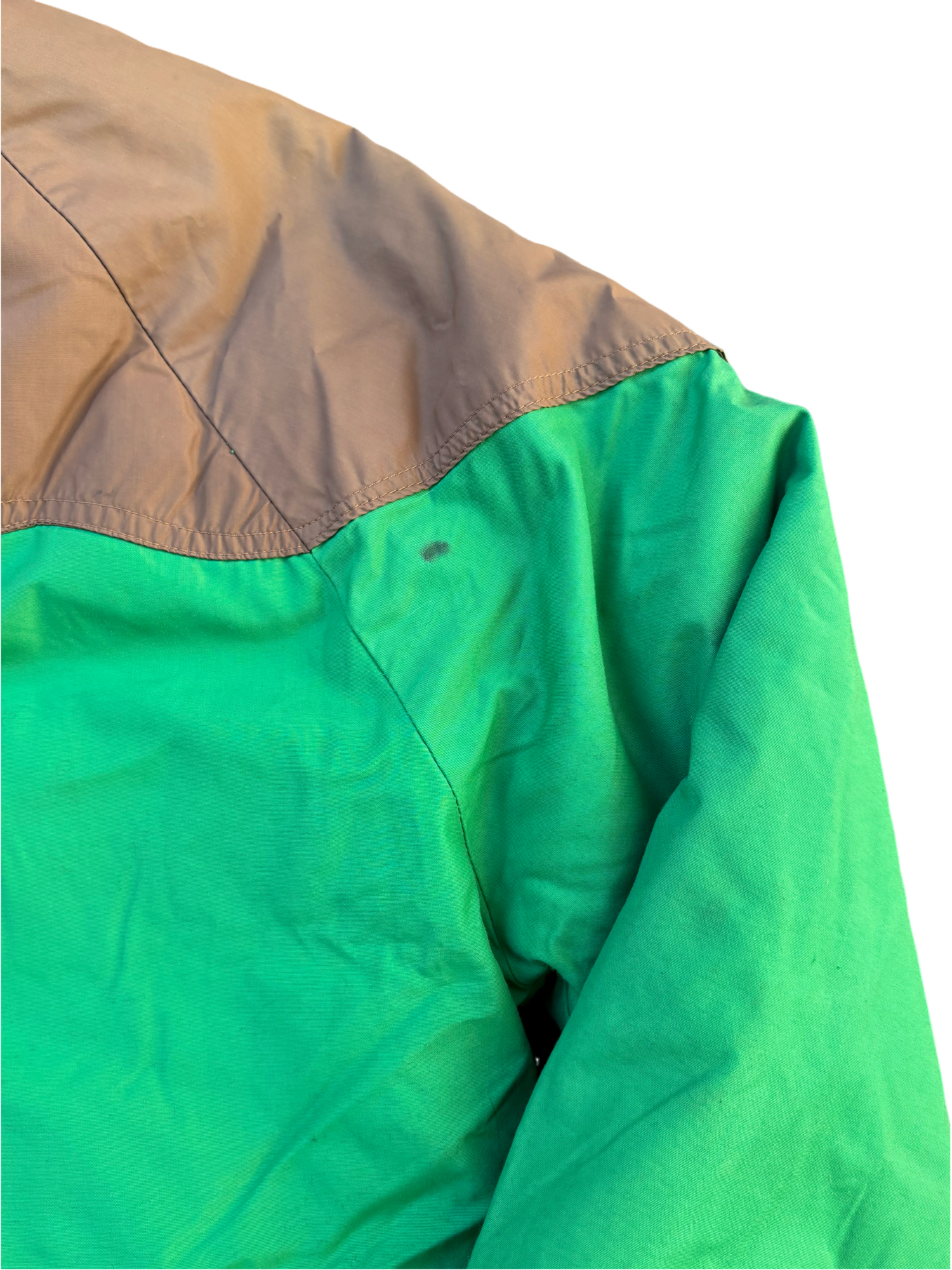 程度はフロントポケット付近に薄汚れ、後ろ右肩、中央付近にシミがあります。